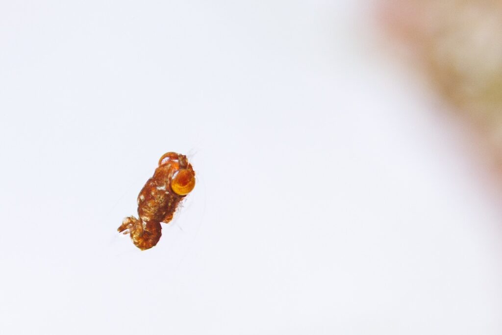 カニの幼体かな!?2色、3色の色付きもいますよ。