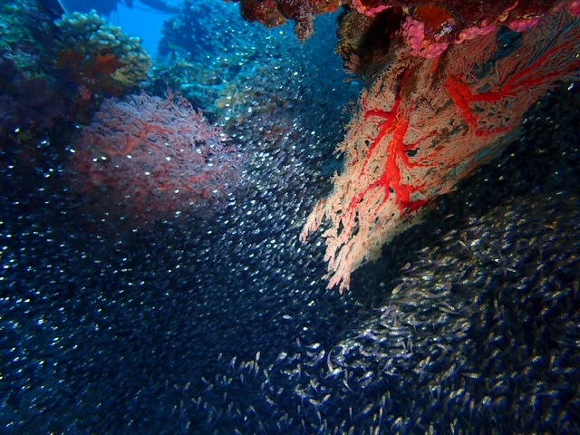 背景のカイメンが綺麗です。